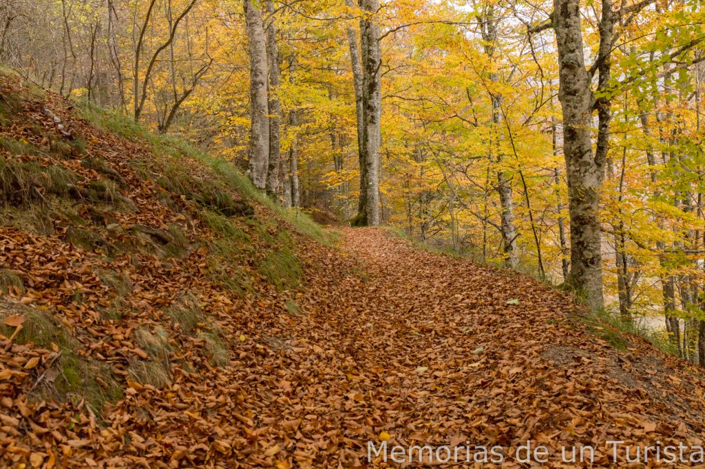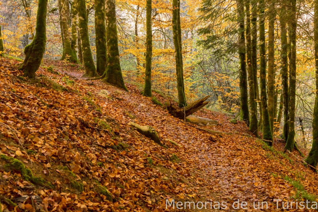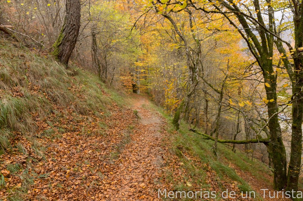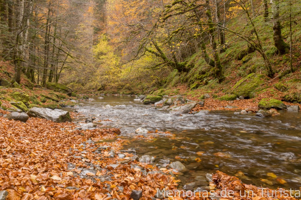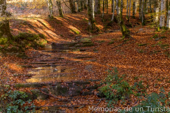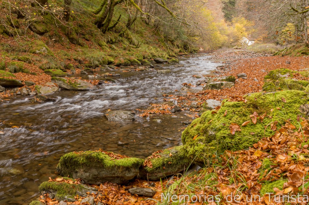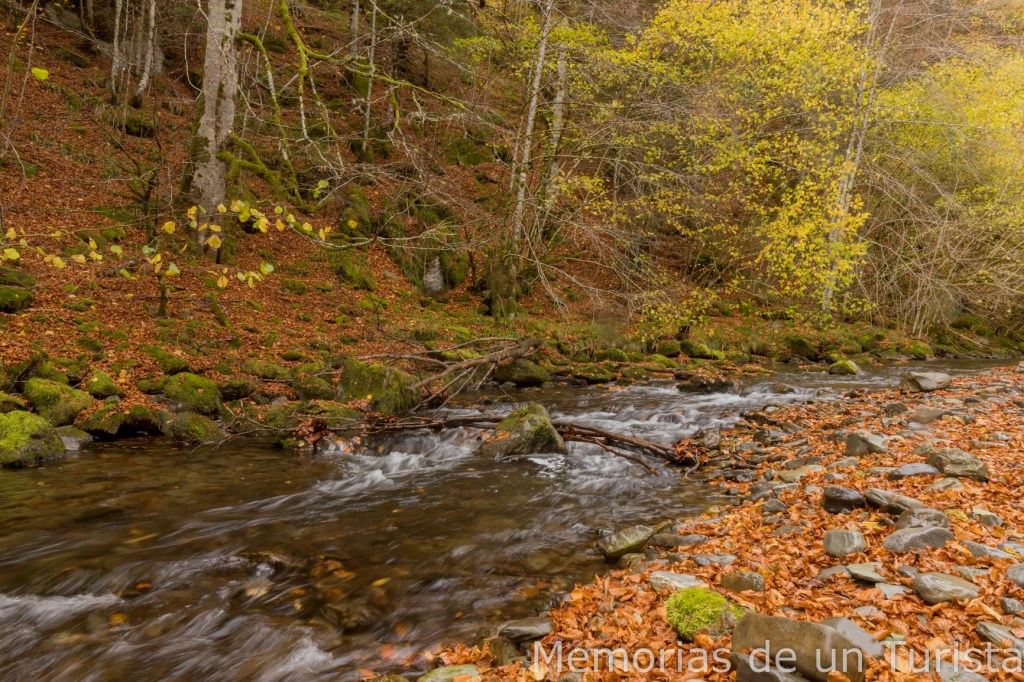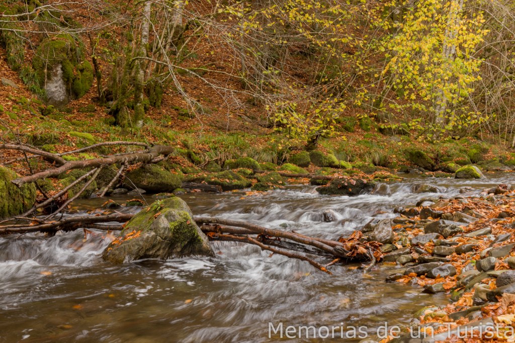 Llegó un punto donde seguir subiendo río arriba era complicado y no me quedó más remedio que volver al camino principal. Sin embargo, unos metros más adelante pude volver a bajar hasta el arroyo.