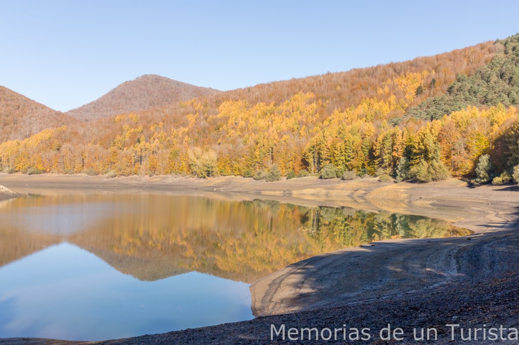 Al llegar a la presa pude ver el reflejo de los castaños en el agua. Aunque son muchas las fotos que tengo de este lugar con los reflejos me volví a casa con alguna más.