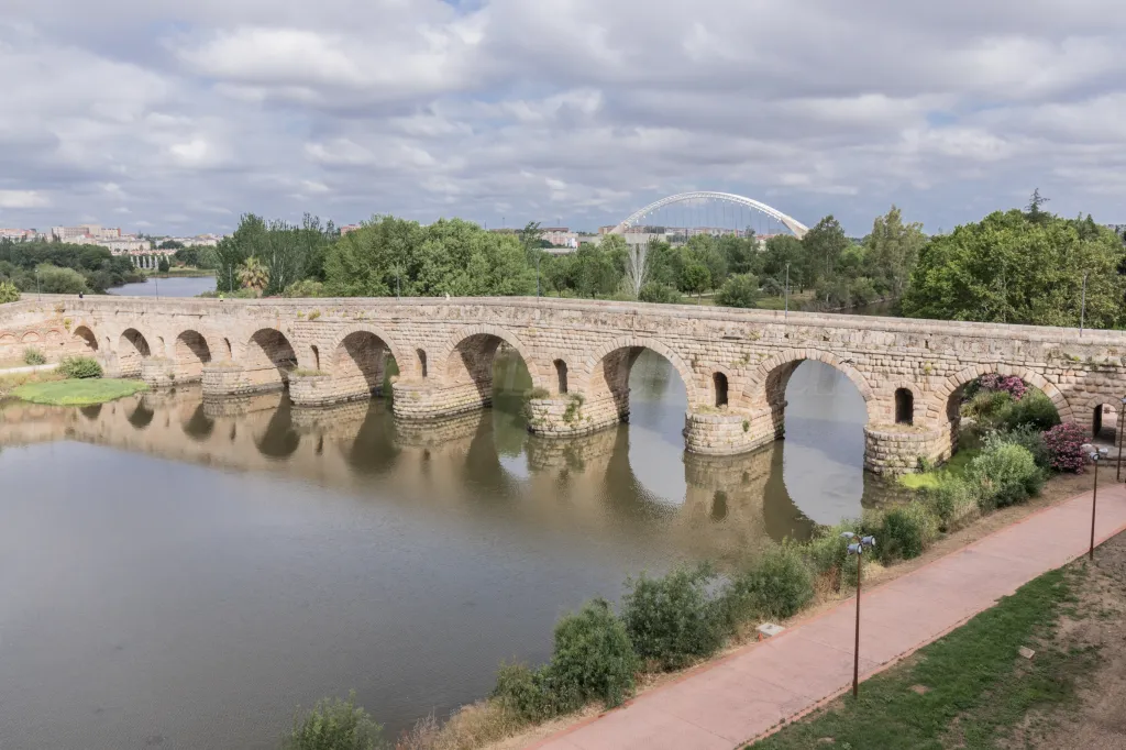 Quince minutos después enseñaba mi DNI en la entrada de la fortaleza árabe, mostrando que vivía en Mérida, y me daban paso. Antes de entrar he preguntado que si el teatro no abría, cuya respuesta ha sido <<sí, abre a las 10:00>>. Una alegría me he llevado, pues ya creía que no lo había hecho aún después del confinamiento. Pero ahora tocaba disfrutar de las vistas desde la muralla de la alcazaba, del puente romano que luce esplendoroso.