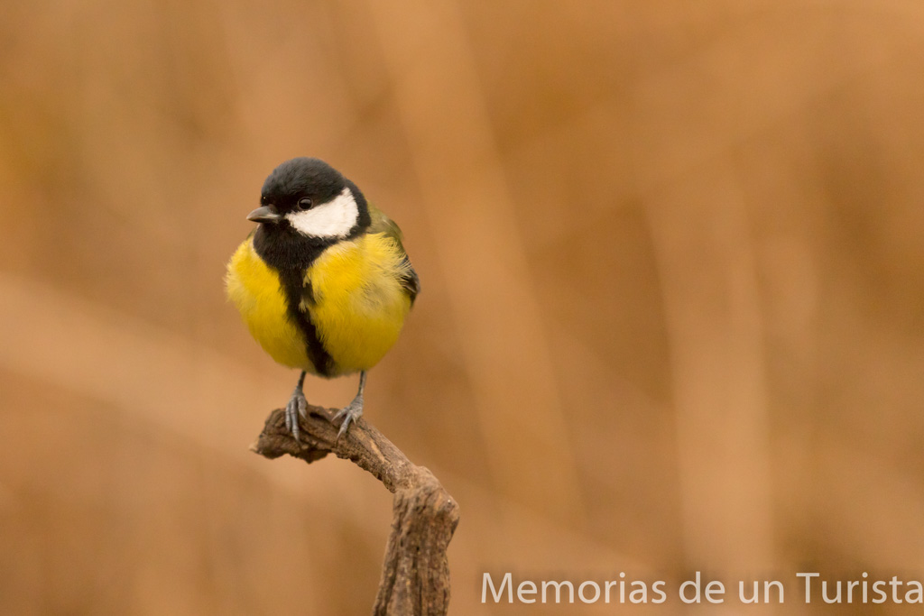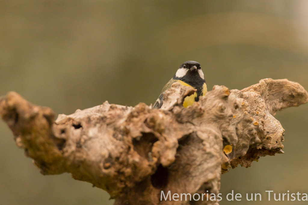 Muy presente también en el hide, con muchos individuos por todas partes. Es algo más grande que los herrerillos, alcanzando una longitud de unos 14 cm y una envergadura de 22 a 25 cm. Su plumaje es muy llamativo igualmente, con plumas amarillas y negras, pasando a ser azules en las alas. Me dio muchos momentos de satisfacción con sus poses. Parecía que estaba posando para un reportaje fotográfico.
