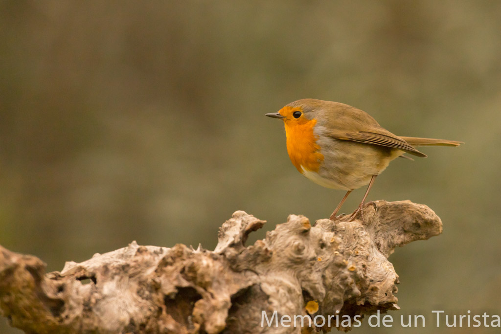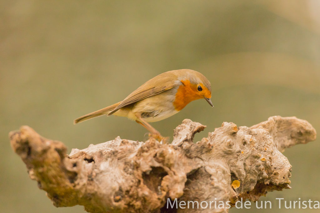 Va y viene al hide, no permaneciendo mucho rato continuo en el mismo, pues este ave se alimenta, principalmente, de insectos. Su longitud es de unos 14 a 16 cm, teniendo una envergadura de 20 a 22 cm. Su mancha de color naranja en el pecho le hace inconfundible, aunque puede que haya gente muy poco puesta en el tema de aves, como yo, que hace un par de años le confundí con otra especie y alguien me corrigió en el blog diciéndome que se trataba de un petirrojo.
