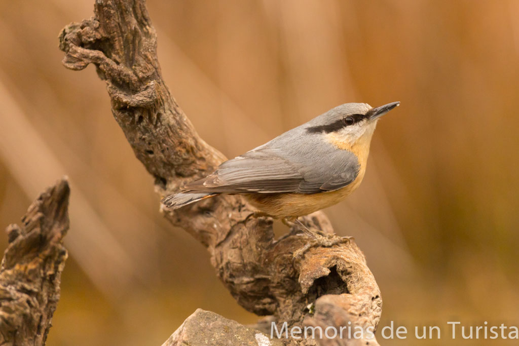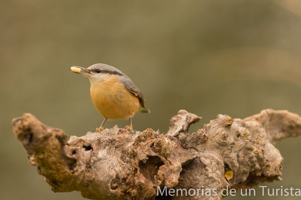 Creo que después del herrerillo común es el más presente en el hide. Siempre hay algún individuo en él, merodeando de aquí para allá, buscando comida y bebiendo. Tiene una longitud de 12 a 14 cm y una envergadura de 22 a 27 cm. El tono de sus plumas es azul y anaranjado en la parte inferior. Su nombre viene porque trepa por las ramas y troncos de los árboles.