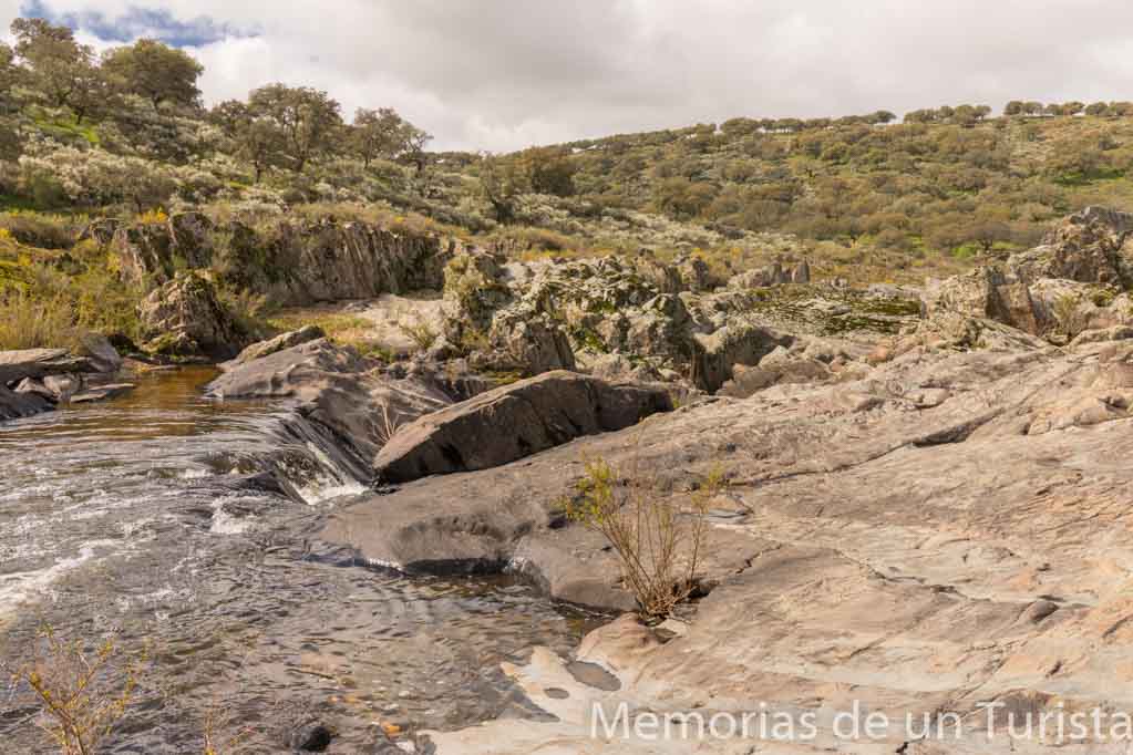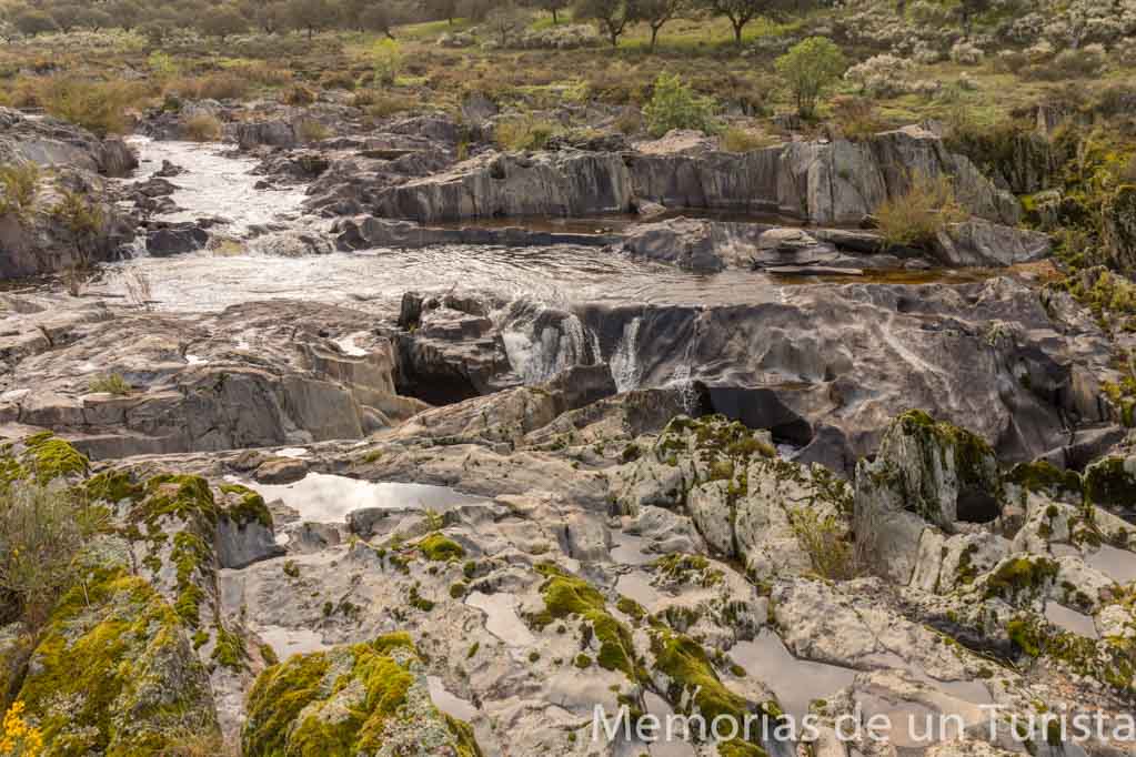 El agua ha erosionado la roca durante millones de años, formando pequeñas pozas. Me recuerdan a las pozas de Los Pilones, en el Valle del Jerte.