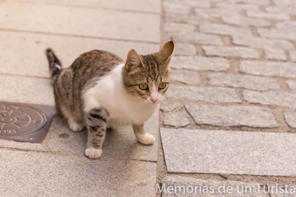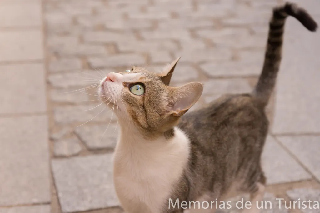 Y llegando a otra de las calles me encontré con unos amiguitos que pedían comida a la puerta de una casa. El rato que pasé tirándoles fotos fue de lo mejor del día, ya no por estar fotografiando a estos bonitos felinos sino por la charla que tuve con el dueño de la casa, que estaba asomado al balcón (desde aquí le mando un saludo por si me leyera).
