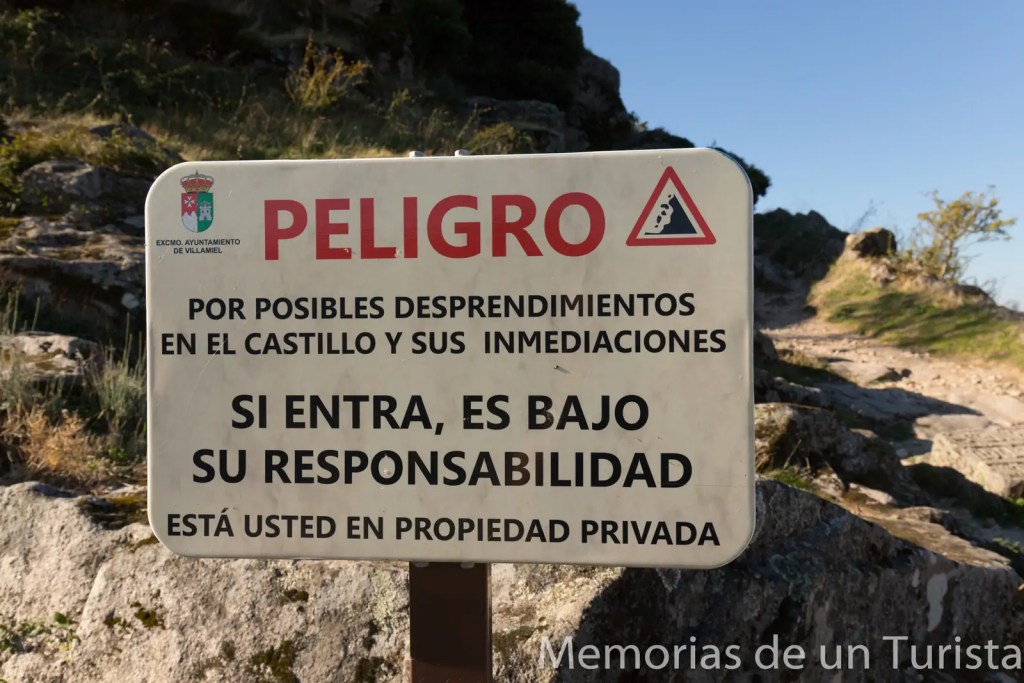 He de decir que el castillo es de propiedad privada y la subida es bajo la responsabilidad de cada uno. Debido al estado en ruina en el que se halla es probable el desprendimiento de alguna de sus paredes. Se deja bien claro en un cartel.