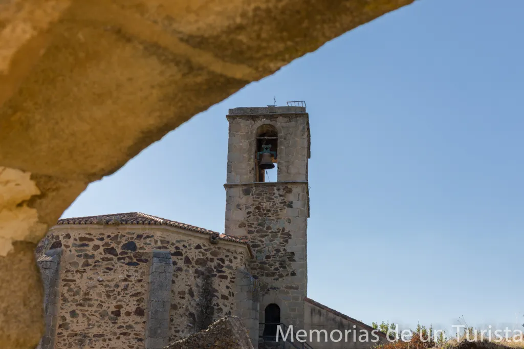 No muy lejana queda la iglesia del pueblo con su campanario. En mi anterior visita hace 10 años la puerta estaba muy deteriorada. Hoy se ve completamente restaurada.