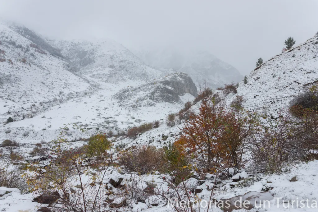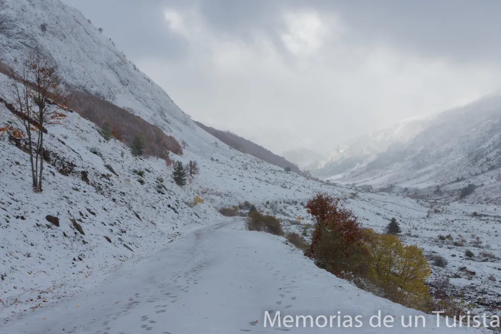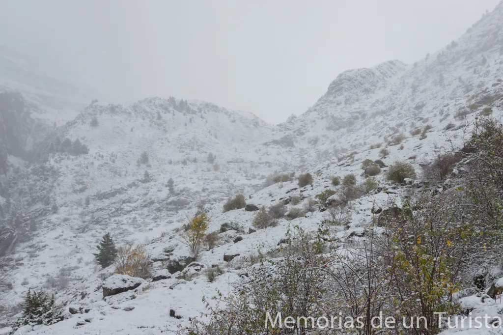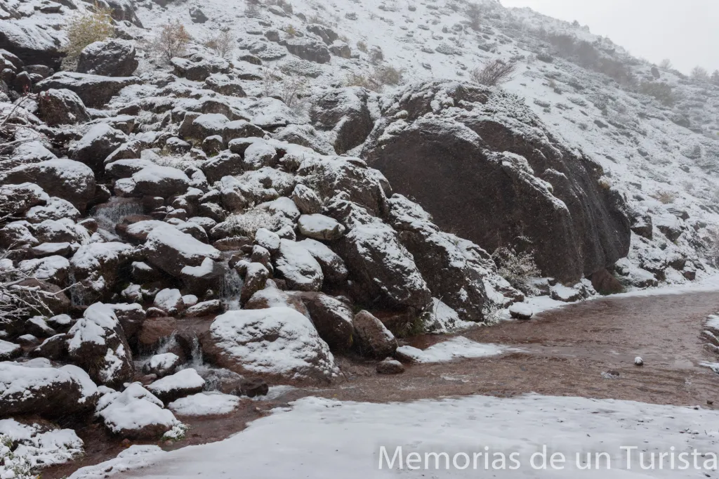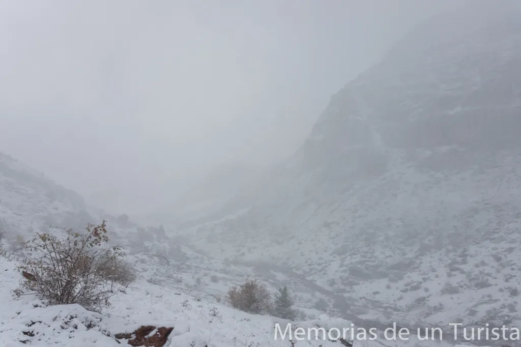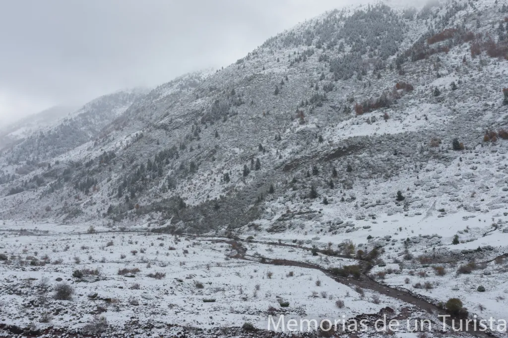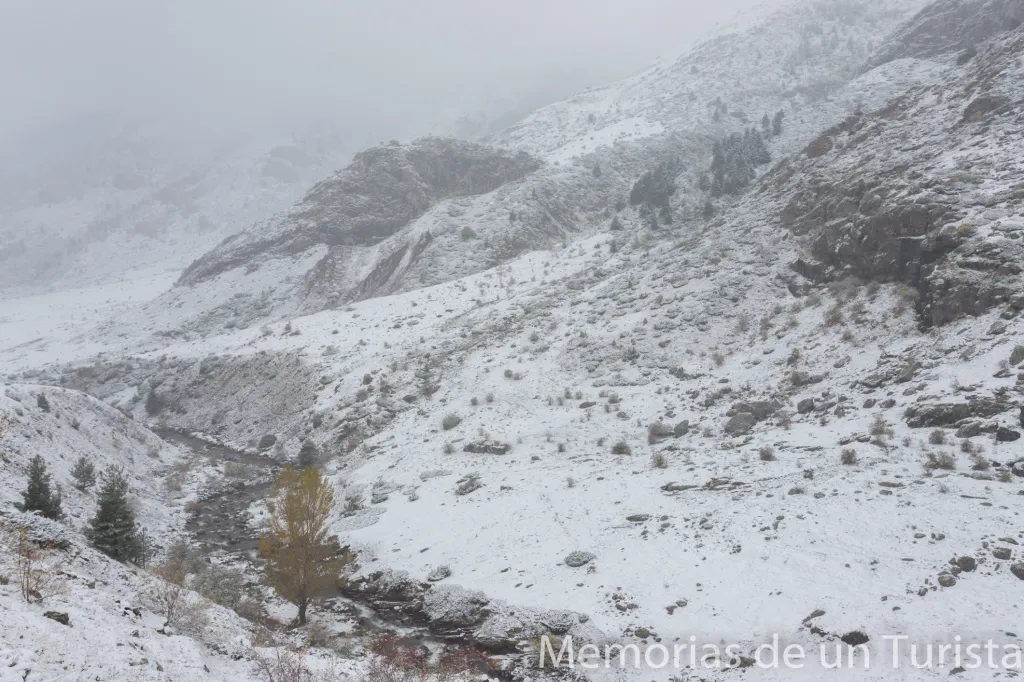 No obstante, me animé a subir (ya andando) por el camino. Pensé que quizás pararía de nevar y el tiempo me daría una tregua para llegar hasta Aguas Tuertas.