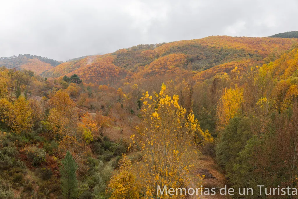 Los robles y los castaños estaban en el punto ideal de color. Al fondo, se mostraba la Villa de Guadalupe con su monasterio y el viaducto.