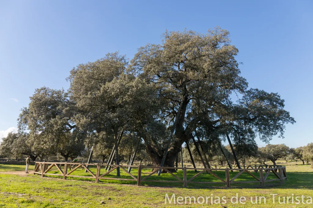 El paseo no duró mucho. Como íbamos muy bien de tiempo y mi acompañante no había visto la Encina La Nieta, ubicada en el término municipal de Torre de Santa María, hicimos una breve parada para que la viera.