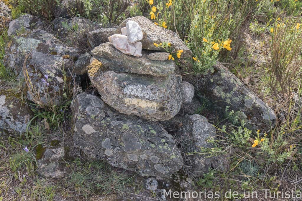 Mi segundo objetivo del día era volver por la garganta para así visitar también el Charco del Trabuquete. Detrás de mí llegó una pareja, Jose y Pilar, cuyo objetivo era el mismo, aunque estaban como yo: ninguno sabíamos desde dónde partía la ruta de bajada a la garganta. Estuvimos más de media hora investigando, incluso bajamos por unas veredas intentando seguir los hitos, pero nuestra búsqueda fue infructuosa. Finalmente, decidimos volver a subir hacia el refugio y volver por el mismo camino de subida. Era la mejor opción puesto que no queríamos arriesgarnos a perdernos en el camino. Al llegar de nuevo al refugio, otra pareja que había subido con sus hijos nos indicó por dónde se bajaba, aunque el hombre nos advirtió que la señalización al principio era escasa y con posibilidad de pérdida. Ello nos convenció de que lo mejor era volver a Guijo de Santa Bárbara por el mismo camino por el que habíamos venido. Dicho y hecho. Jose y Pilar se despidieron de mí y cogieron la delantera. En cuanto me terminé de comer el segundo bocadillo me puse de nuevo en movimiento. Pronto, el refugio quedó a mis espaldas y comenzaba a verlo diminuto otra vez.