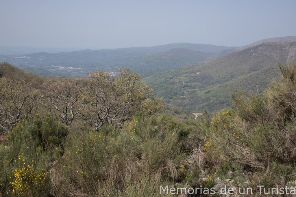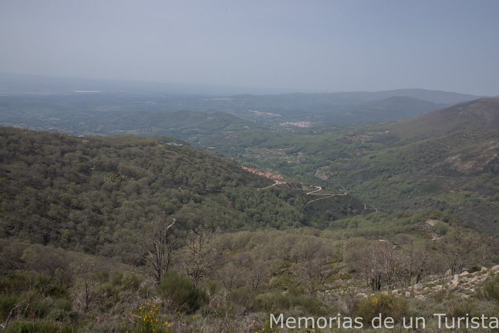 El ascenso continúa sin parar y las vistas cada vez son más espectaculares. Ahora es Guijo de Santa Bárbara el que se ve como una pequeña mancha en el paisaje.