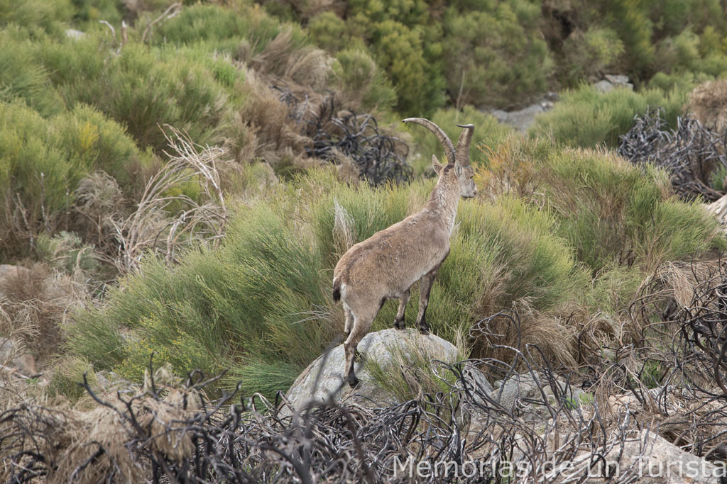 La última parada de la mañana la hice para poder acometer bien el último tramo de subida. También para fotografiar a las cabras montesas que merodeaban por la zona.