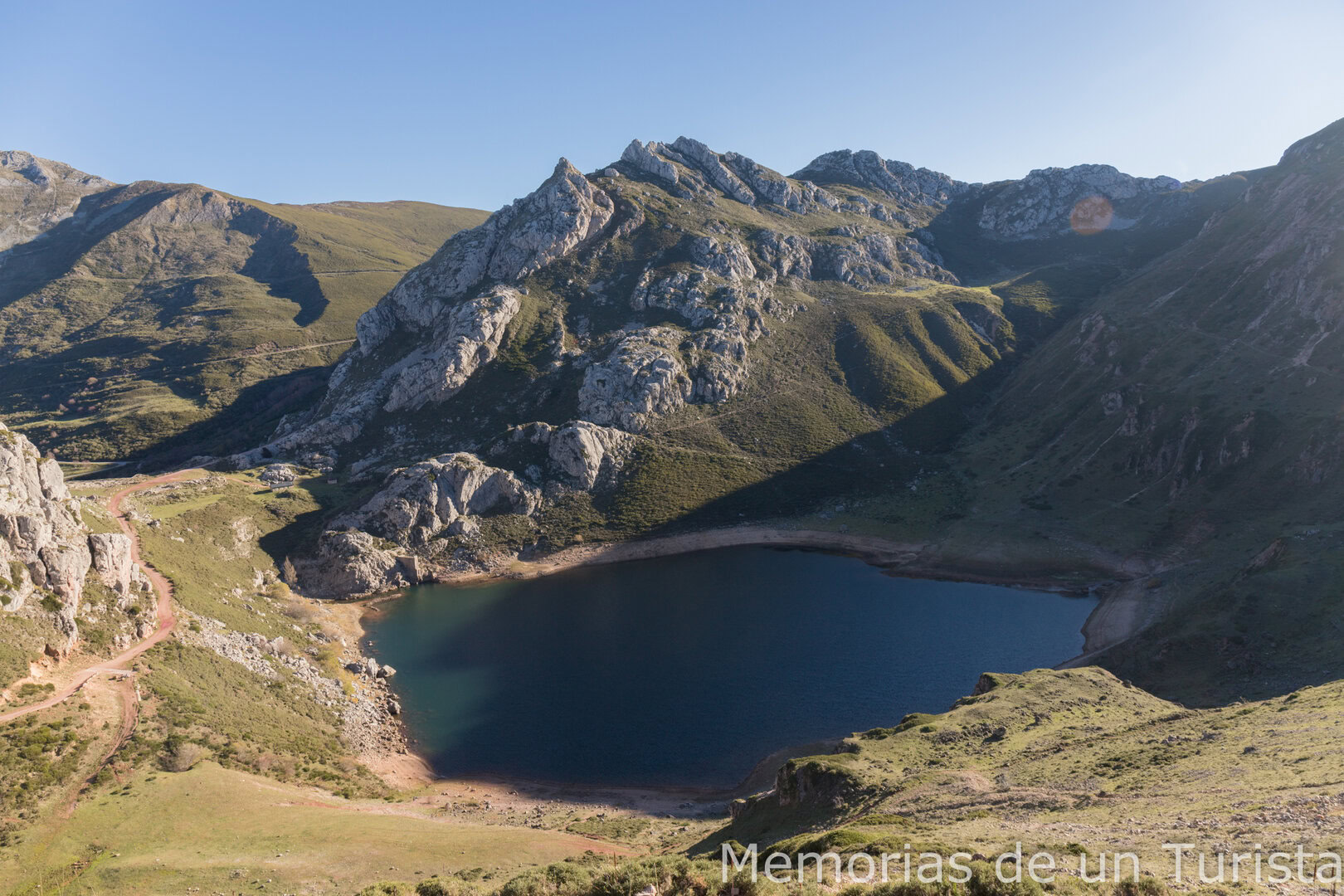 Apenas llevaba andando 15 minutos cuando llegué al primero de los lagos: Lago de la Cueva. Es muy bonito, pero fotográficamente hablando me dio mucha rabia encontrarme el sol de frente.