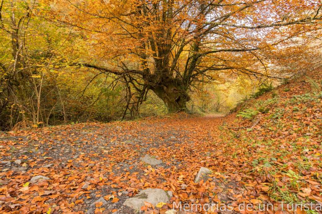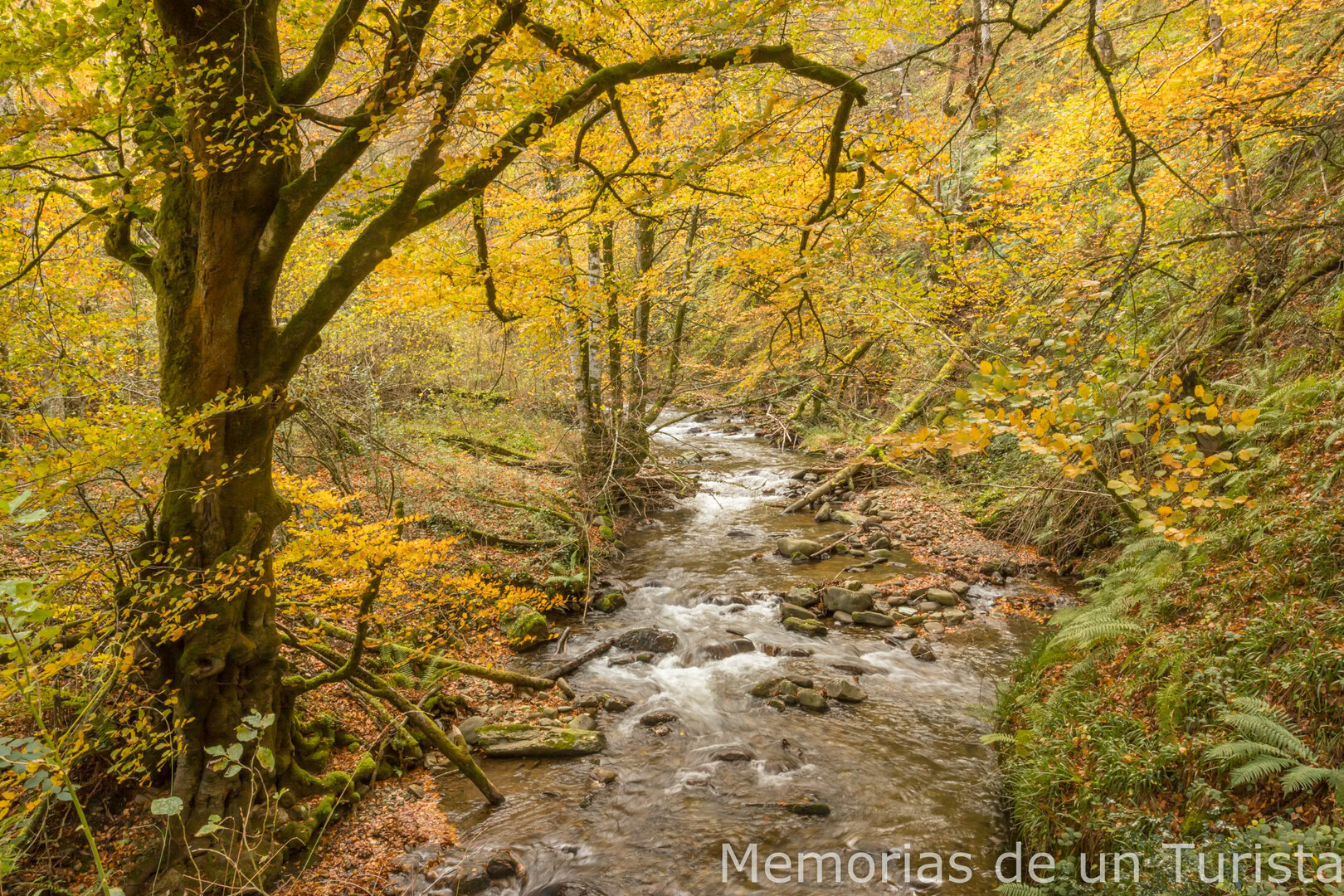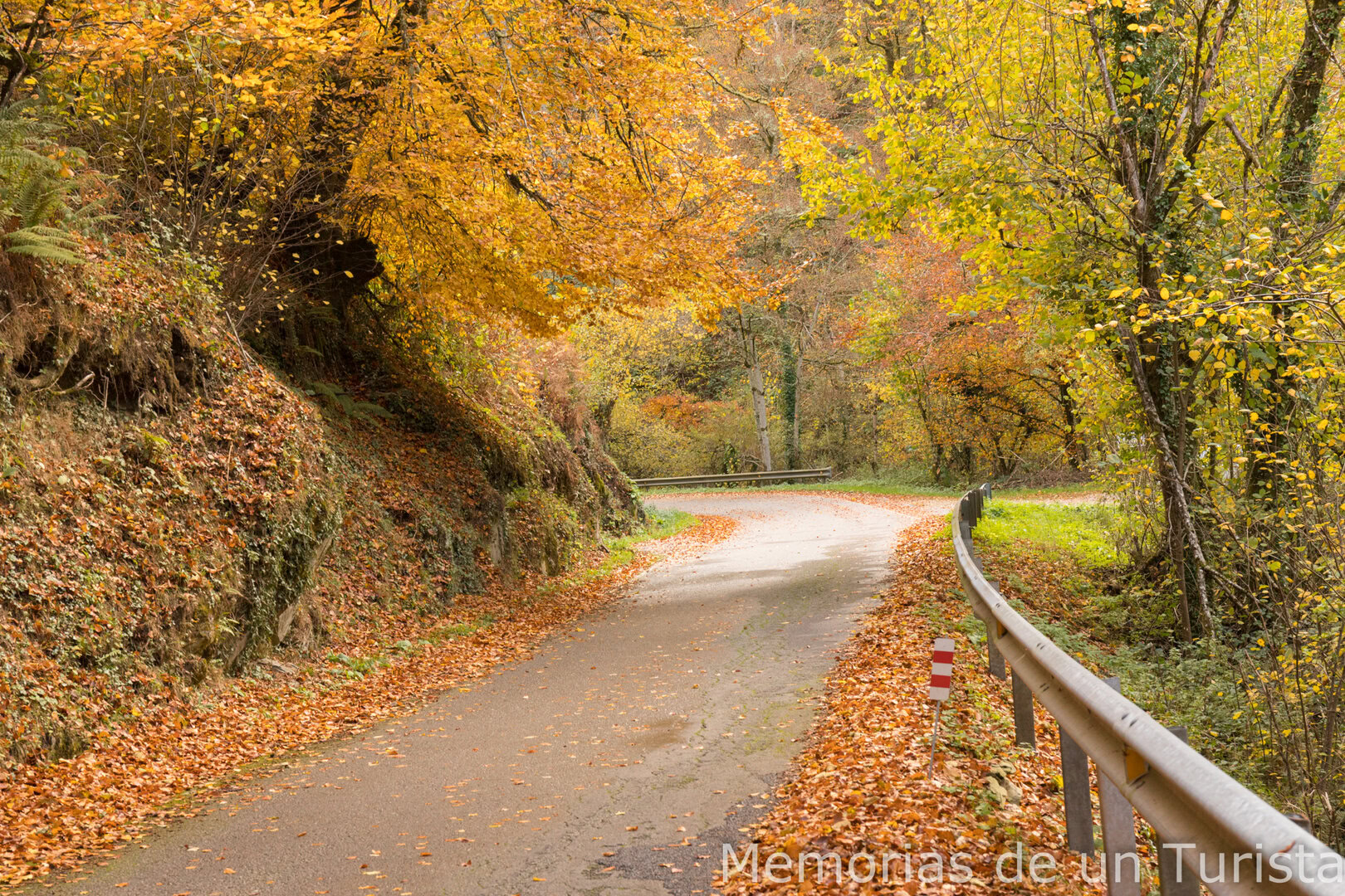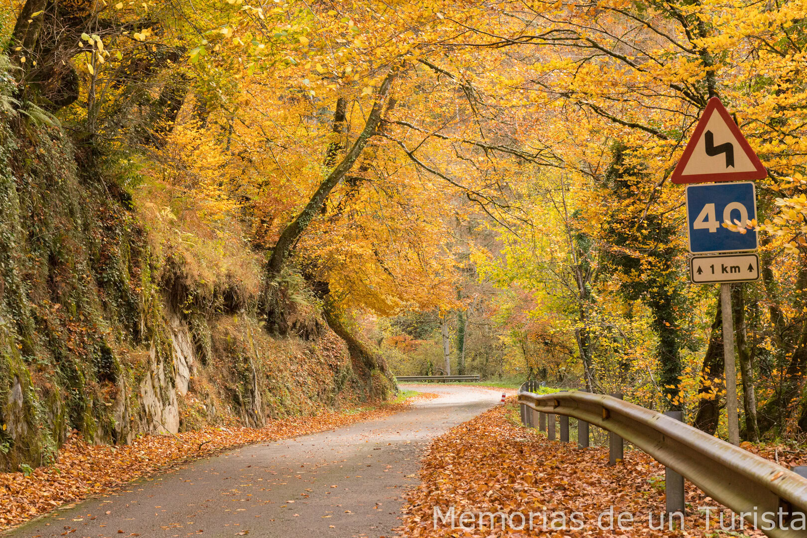 Aún me quedaba mucha mañana por delante, por lo que, sin duda, decidí acercarme hasta el hayedo de Gedrez. Era algo que, aunque lo habíamos hablado meses atrás, Dani me dijo que no me dejara atrás esta visita porque me iba a impresionar. Desde aquí, tengo que darle las gracias por darme a conocer este impresionante entorno. La carretera que une las poblaciones de Gedrez y Monasterio de Hermo era todo un espectáculo de color. Conducir por ella fue una sensación que no se puede contar.