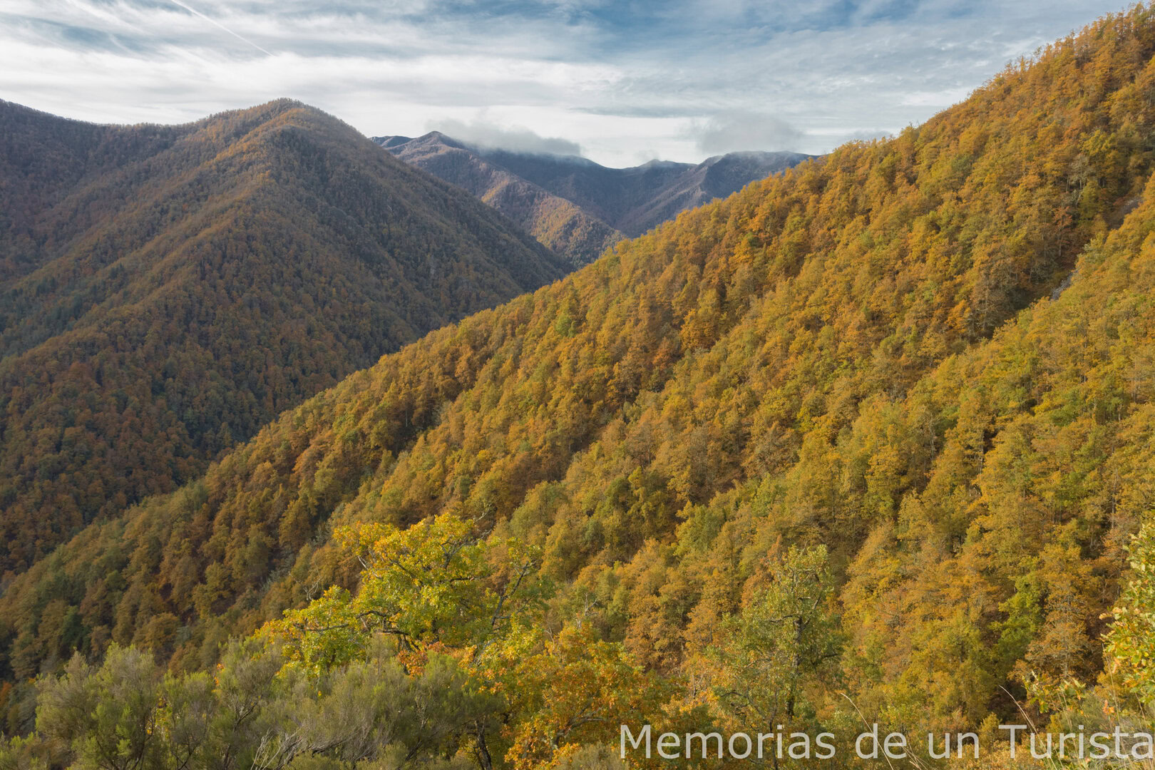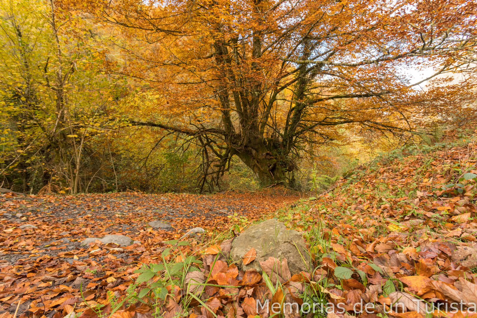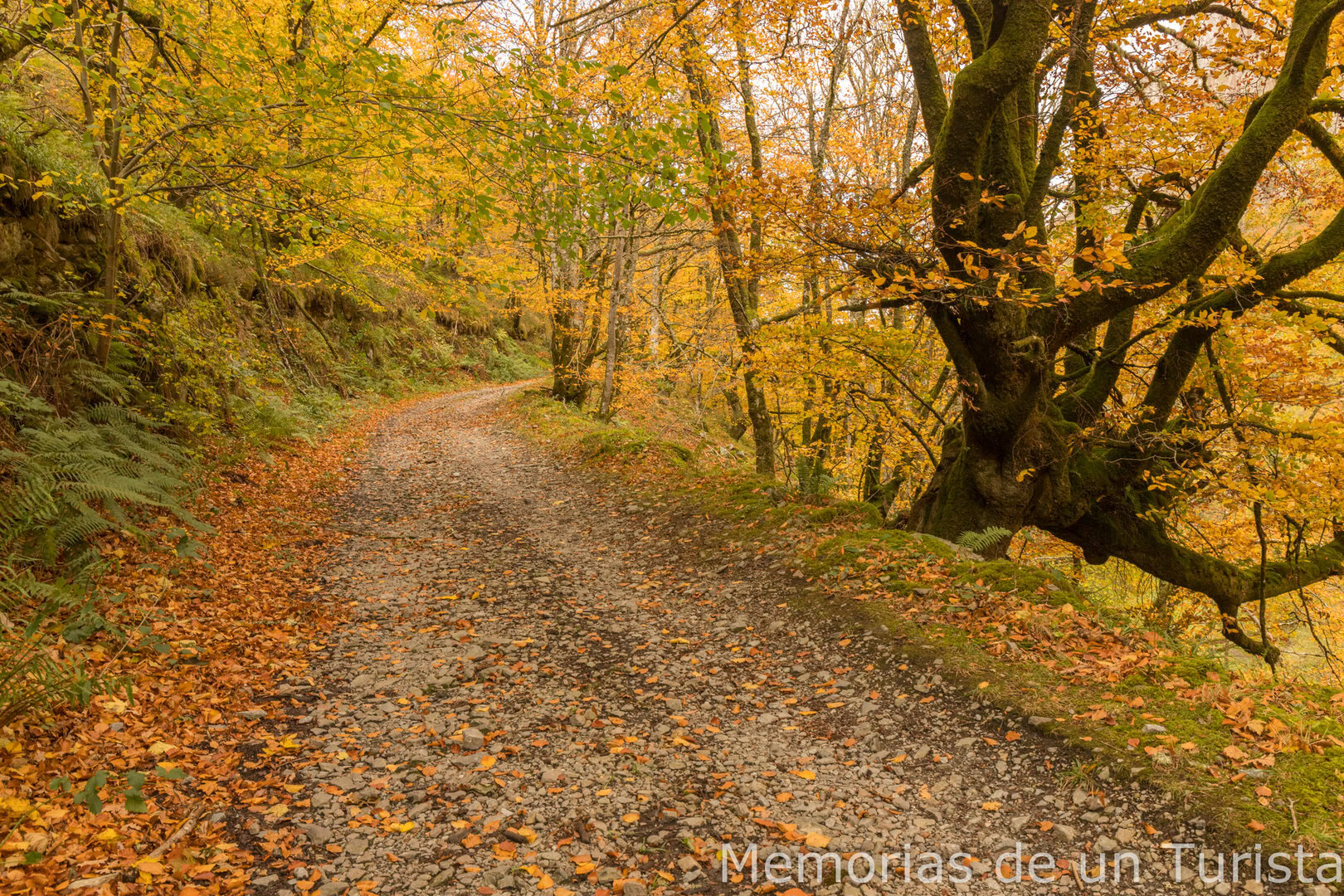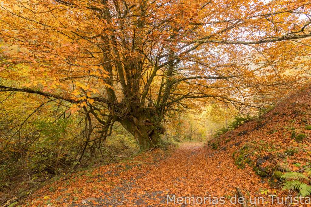 Aún me quedaba mucha mañana por delante, por lo que, sin duda, decidí acercarme hasta el hayedo de Gedrez. Era algo que, aunque lo habíamos hablado meses atrás, Dani me dijo que no me dejara atrás esta visita porque me iba a impresionar. Desde aquí, tengo que darle las gracias por darme a conocer este impresionante entorno. La carretera que une las poblaciones de Gedrez y Monasterio de Hermo era todo un espectáculo de color. Conducir por ella fue una sensación que no se puede contar.