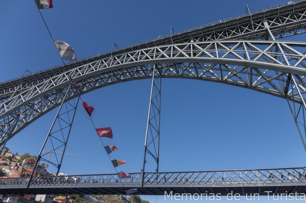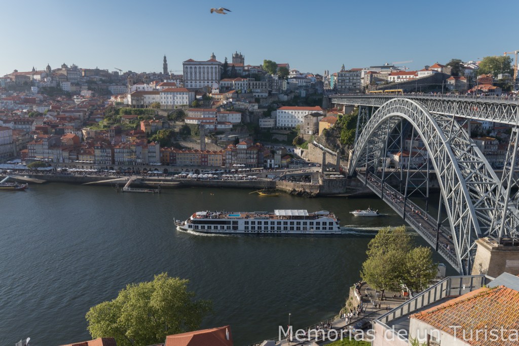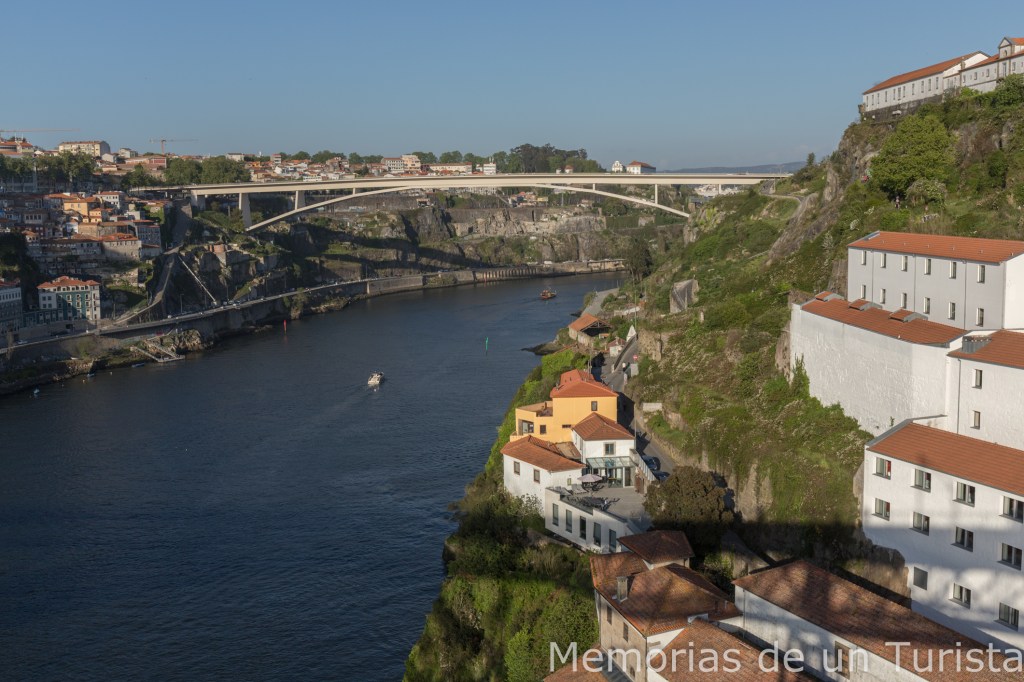 Una vez terminado el paseo en barco, decidimos montar en el teleférico que cruza el río. Nos dejó en lo alto del puente de hierro, desde donde hay unas vistas espectaculares de Oporto. Lástima que el sol estuviera en una posición donde las fotos salían mal. No obstante, alguna medio decente pude hacer.