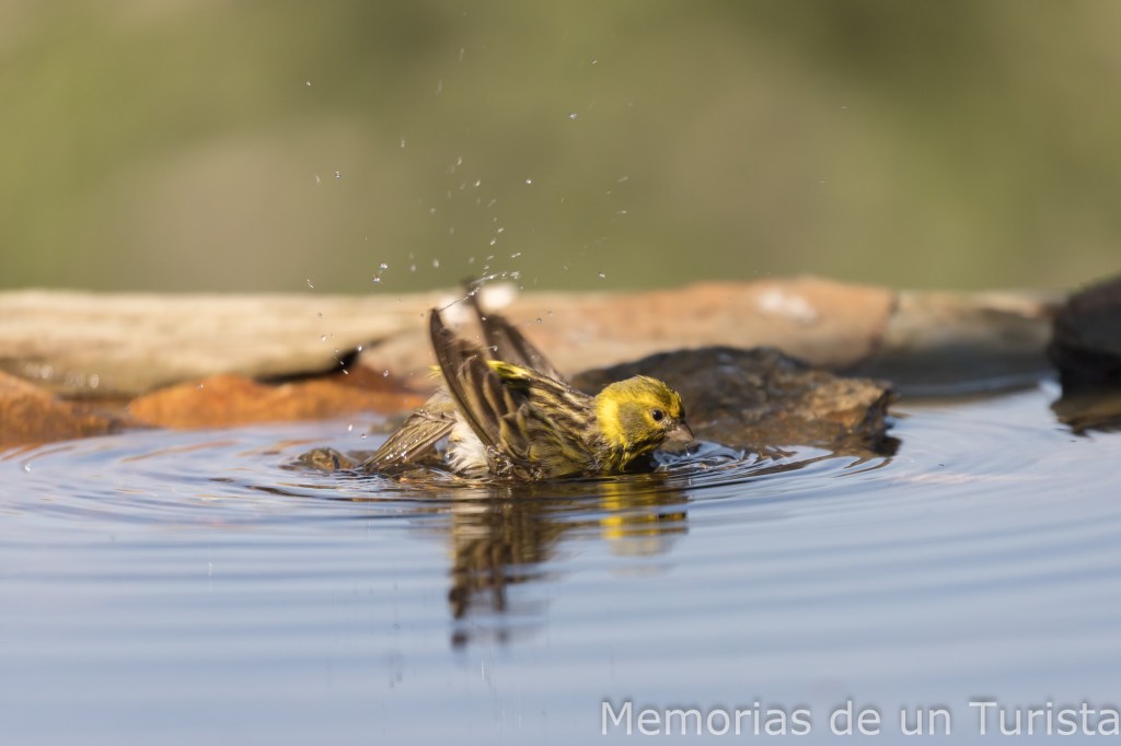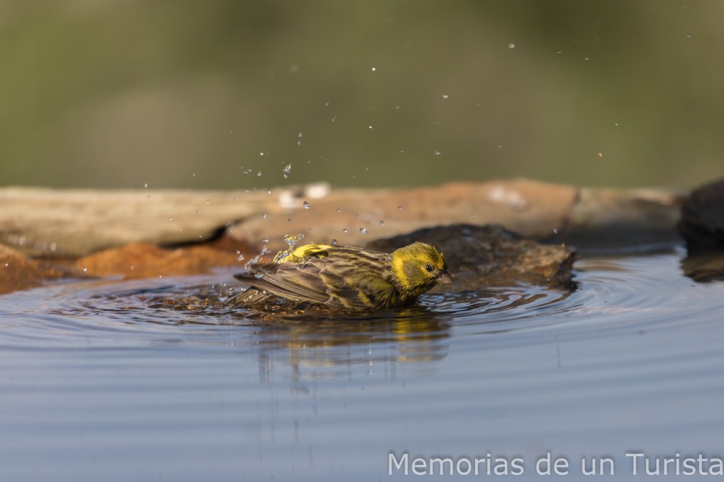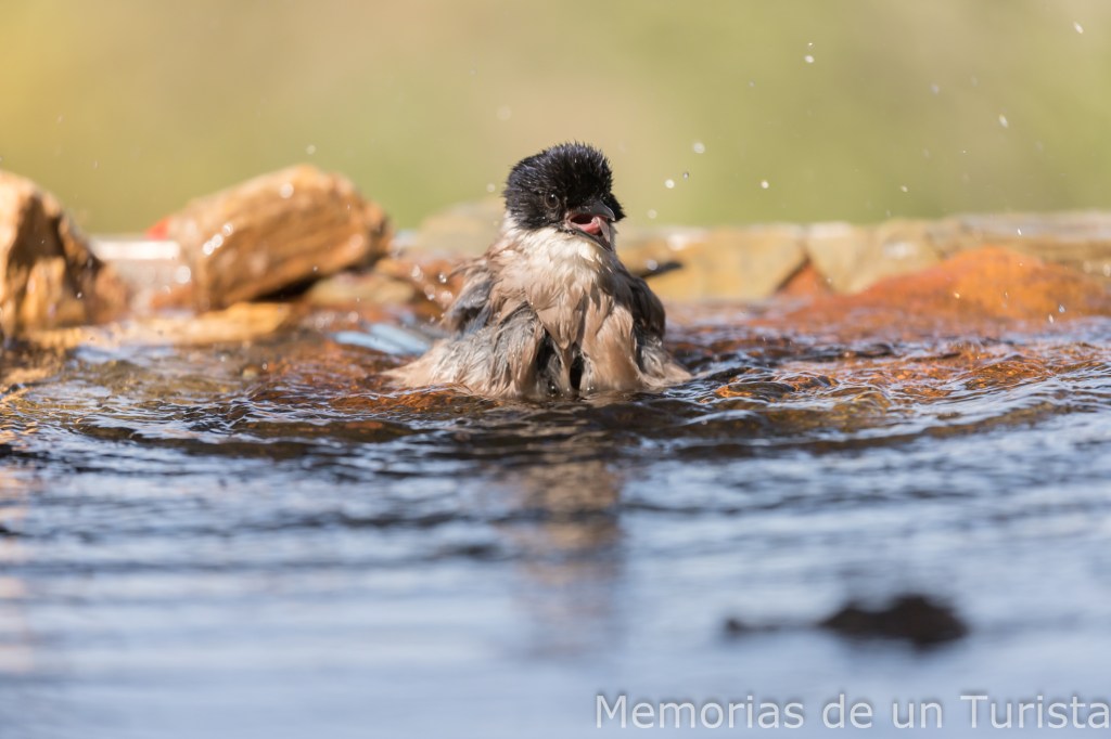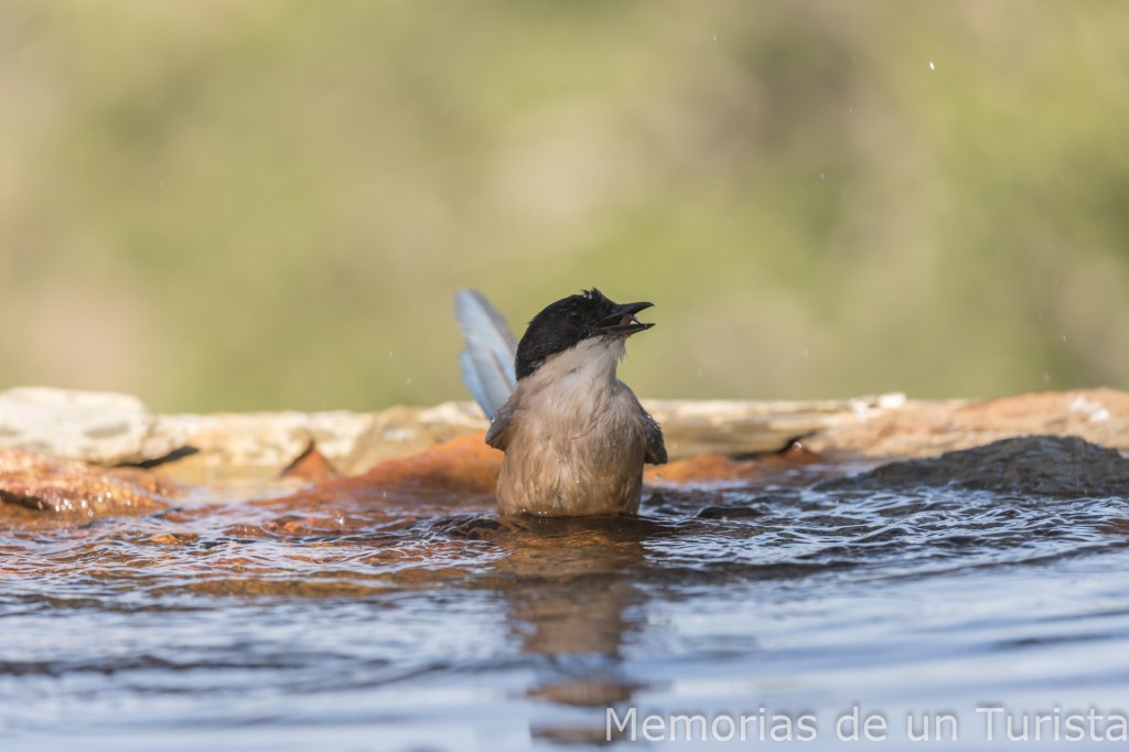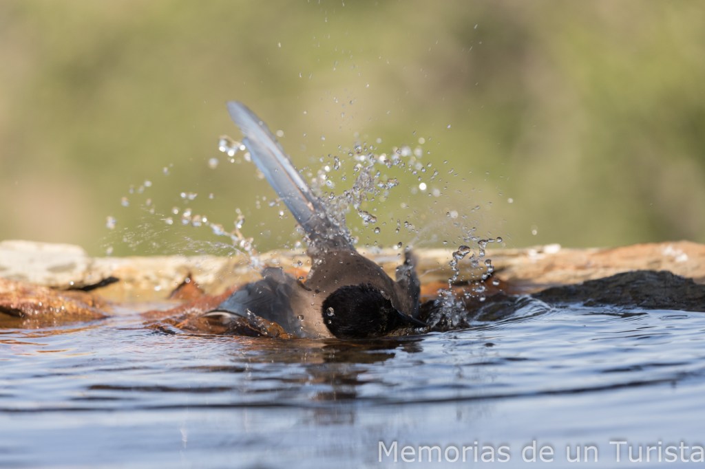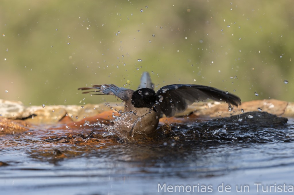 Diría que se trata del macho alfa del bebedero, pues cuando están ellos no dejan entrar a ningún otro pajarillo. Y si está alguna otra especie y llegan los rabilargos, los echan. Tengo que decir que los baños que se dieron me hicieron disfrutar un montón.