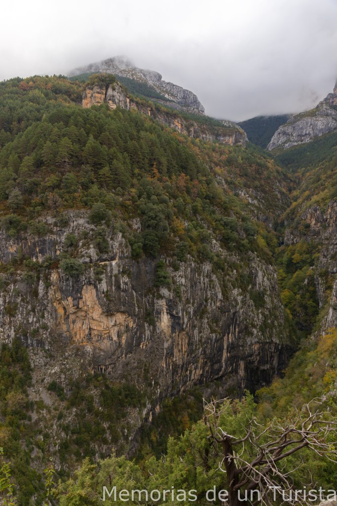 Con la emoción de haber visto por primera vez en mi vida, más o menos cerca, un quebrantahuesos, continué la marcha junto a la pareja de gallegos. Estuvimos intercambiando impresiones y rutas realizadas en los últimos días por Ordesa y Monte Perdido. Pronto, llegamos hasta el primero de los miradores, pero estaba totalmente encharcado y apenas pude fotografiar desde él. Aún así, las vistas obtenidas hasta la Garganta de Escuaín quitaban el hipo.