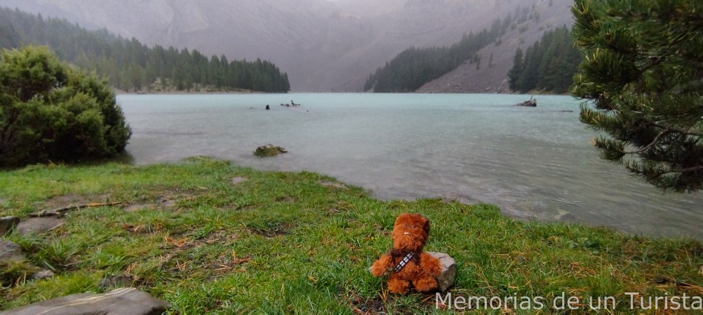 Después de casi una hora llegué hasta el Refugio de Lavasar. Desde allí parte la ruta hacia el ibón y no tiene pérdida. Era tanto el viento y agua que caía en esos momentos que no me paré a hacer ninguna foto en el camino. La única parada que hice fue cuando llegué al Ibón de Plan. Me pareció súper bonito y fotogénico. La rabia me comía por dentro al no poder disfrutar plenamente de aquel entorno, pues el paraguas llevaba rato que apenas hacía su función porque el viento hacía que saliera volando y me mojara. Así que apenas estuve en el ibón 15 minutos, tiré las fotos de rigor y me di la vuelta de camino al coche. Antes de volver hacia el pueblo, entré en el Refugio de Lavasar (también se puede escribir Labasar) para cotillear qué había dentro. Me sorprendió lo bien cuidado que estaba y la gran cantidad de notas dejadas por las personas que han pasado por allí, por lo que yo también aporté mi granito de arena.